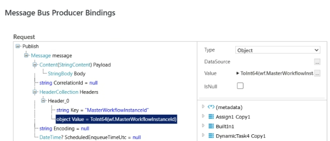 Starting from V10.8, you can start workflow instances using the Message Bus Listener from a specified master workflow instance, so that the new workflow instance logic can access and utilize data from the master instance's scope.
