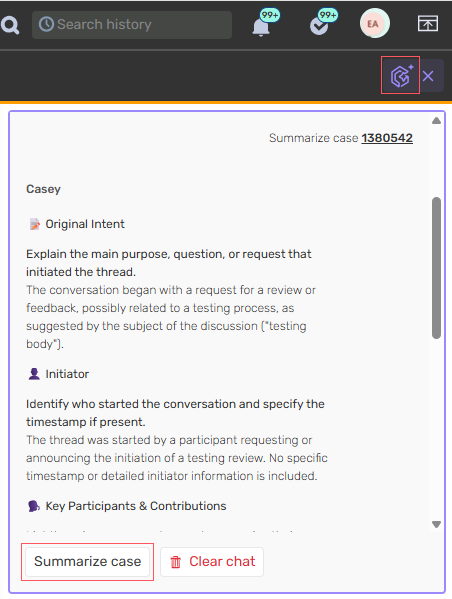 - Agentic Case Experience Prototype: As part of AI capabilities, we have introduced an AI-driven assistant that enables one-click case summarization using the “Summarize Case” option.